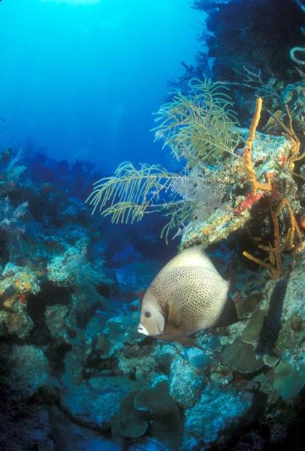 The Blue Hole originates from a collapsed cavern, after an ice age 15,000 years ago, forming a sinkhole. Jacques Cousteau made it famous during his 1970 expedition with the Calypso. The Blue Hole is perfectly circular, and the diameter measures 1,045 feet (320 meters) and the maximum depth is 412 feet (125 meters). Except for two narrow passages on the eastern and the northern rims, the Blue Hole is completely rimmed by living coral. Most interesting about the dive is the impressive descend, and the rock formation and the stalactites. Marine live is less interesting, although you will encounter moray eels. Sharks and turtles may be found but their presence is unpredictable. This dive is a must for every self respecting diver.